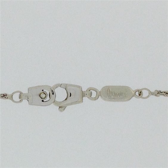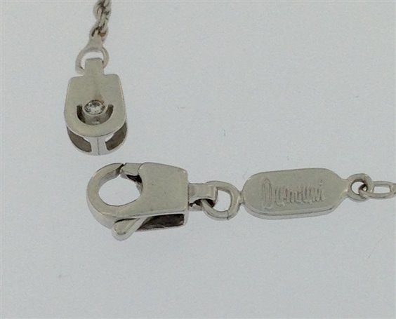 Collana Damiani con pendente a forma di pesce palla in oro rosa e bianco con incassatura brillanti su pinne coda occhio e biglierina. dimensione del pendente pesce cm 2 x 1.8 + 0.5 biglierina. catena a corda in oro bianco 18 kt. con chiusura firmata Damiani con brillante.