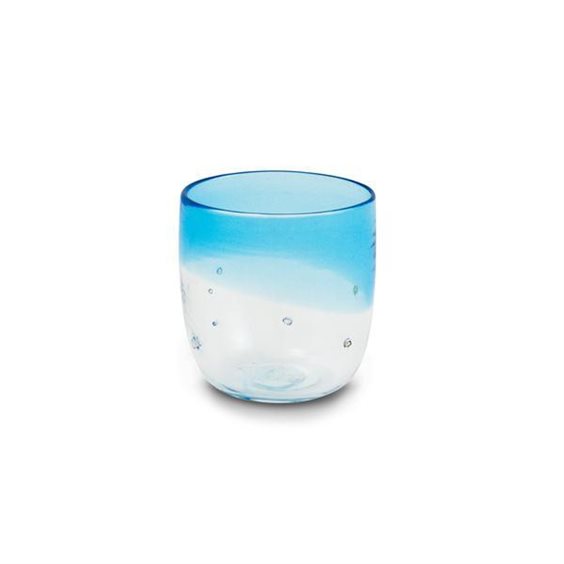 set di 6 bicchiere in vetro soffiato trasparente e colorato con incastonate pepite d'argento. La lavorazione viene eseguita da abili maestri vetrai di Murano che sono in grado di unire la preziosità dell'argento alla semplicità del vetro. Perfetto per dare un tocco di colore a una tavola elegante e raffinata. Dimensioni: diametro 9 cm e altezza 10 cm