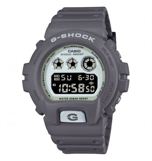la serie G-SHOCK “Hidden Glow” che si illumina al buio. Tutti i modelli possiedono delle parti luminescenti all’interno del quadrante che rivelano un bagliore verde in situazioni di scarsa luminosità, accentuando il design distintivo di ogni modello. Inoltre, i principali componenti dell’orologio sono realizzati in resina bio-based, prodotta utilizzando risorse organiche rinnovabili. Il risultato è quello di un orologio monocromatico sui toni del grigio con un design fluorescente e accattivante. Caratteristiche dell'orologio Cronometro Cronometro a centesimi di secondo Capacità di misurazione: 00'00''00~59'59''99 (per i primi 60 minuti) 1:00'00~23:59'59 (dopo 60 minuti) Unità di misura: 1 centesimo di secondo (per i primi 60 minuti) 1 secondo (dopo 60 minuti) Modalità di misurazione: tempo trascorso, tempo parziale, tempi del 1° e 2° posto Timer Timer conto alla rovescia Unità di misura: 1 secondo Intervallo conto alla rovescia: 24 ore Intervallo impostazione del tempo di avvio del conto alla rovescia: da 1 secondo a 24 ore (incrementi di 1 secondo, incrementi di 1 minuto e incrementi di 1 ora) Altro: ripetizione automatica Promemoria sonoro /Segnale orario Segnale orario Promemoria sonoro multifunzione Avvisi che lampeggiano Avviso con luce lampeggiante Lampeggia con un segnale acustico per i promemoria sonori, segnali orari, segnale acustico di fine timer conto alla rovescia Luce Retroilluminazione LED (Super Illuminator) Postluminescenza Colore chiaro LED: Bianco Calendario Calendario automatico completo (fino all'anno 2099) Precisione Precisione: ±15 secondi al mese Altre caratteristiche Formato 12/24 ore Indicazione dell'ora regolare: ora, minuto, secondo, pm, mese, data, giorno del mese