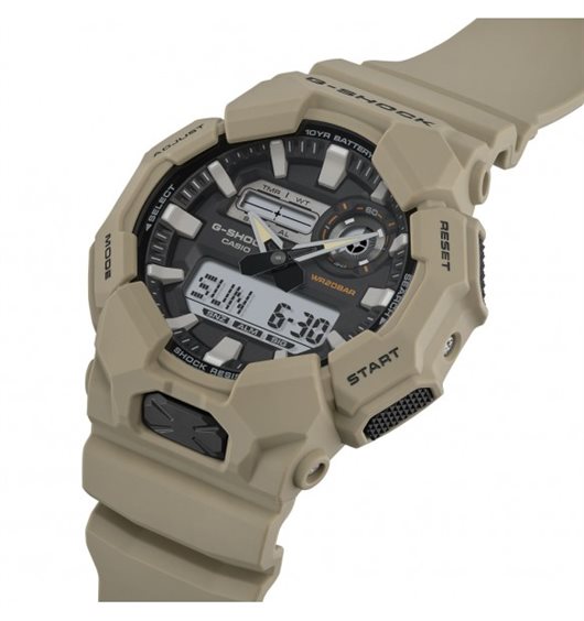 Meno cambi di batterie con un G-SHOCK con cassa grande e una batteria di 10 anni di cui non ci si dovrà più preoccupare per anni. Il modello GA-010 analogico-digitale offre pratiche funzioni come l'ora internazionale e il cronometro, nonché una luce LED ad alta luminosità, facilmente accessibile dall'ampio pulsante sulla parte anteriore della cassa, che garantisce visibilità anche al buio. Realizzato in resina a base biologica e dotato di una batteria di 10 anni, questo G-SHOCK è perfetto se si vuole ridurre l'impatto ambientale. Disponibile in una selezione di combinazioni di colori di stile a base nera per un design accattivante che passa con facilità da ambienti casual a situazioni di lavoro.