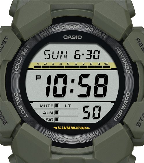 Addio per un po' cambio batteria, con un G-SHOCK con cassa grande e una batteria di 10 anni di cui non ci si dovrà più preoccupare per anni. Il modello GD-010 digitale offre pratiche funzioni come l'ora internazionale e il cronometro, nonché una luce LED ad alta luminosità, facilmente accessibile dall'ampio pulsante sulla parte anteriore della cassa, che garantisce visibilità anche al buio. Realizzato in resina a base biologica e dotato di una batteria di 10 anni, questo G-SHOCK è fantastico se si vuole ridurre l'impatto ambientale. Disponibile in una selezione di combinazioni di colori di stile a base nera per un design accattivante che passa con facilità da ambienti casual a situazioni di lavoro.