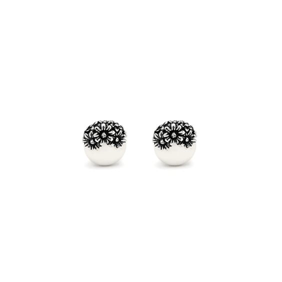 Due deliziose perle d'acqua dolce e i decori floreali in miniatura trasformano questi orecchini in una luminosa scultura contemporanea. Realizzati a mano in azienda Argento 925 e perle naturali Peso singolo orecchino 4,5 gr Altezza 1,6 cm Chiusura con farfallina Fatto a mano in Italia