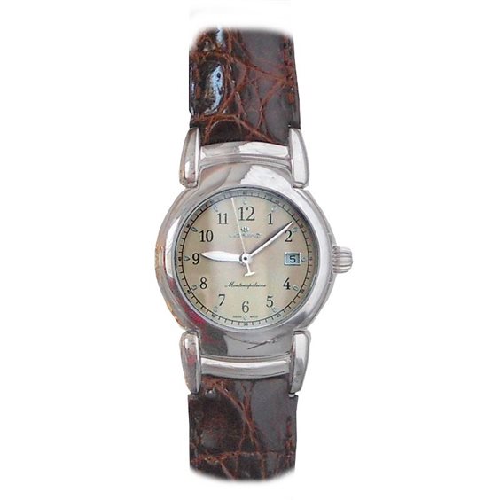 Orologio donna Lorenz donna mod. MONTENAPOLEONE cinturino coccodrillo MARRON scuro. movimento al quarzo cassa in acciaio datario numeri arabi quadrante tinta burro. vetro zaffiro