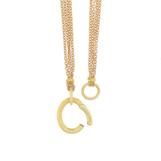 collana con catena rolò in argento 925 placcato oro rosa 18 kt. e pendente in agata bianca a forma di zanna. La collana può essere indossata lunga o corta.