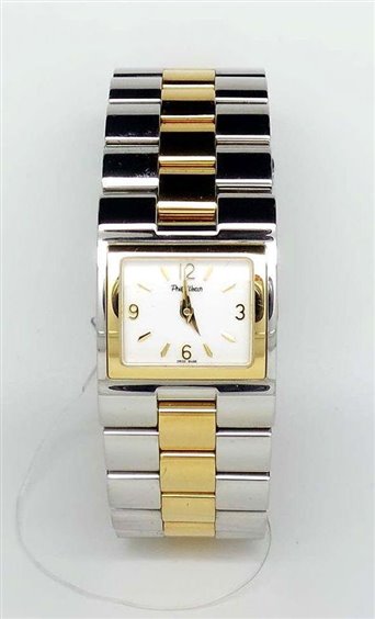 Cassa in acciaio 23x23 mm con trattamento PVD oro giallo, bracciale in acciaio, movimento al quarzo, vetro zaffiro, impermeabilità 50m
